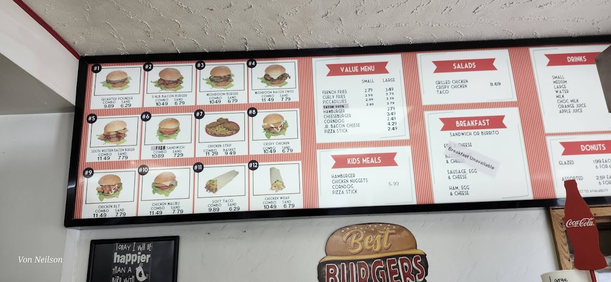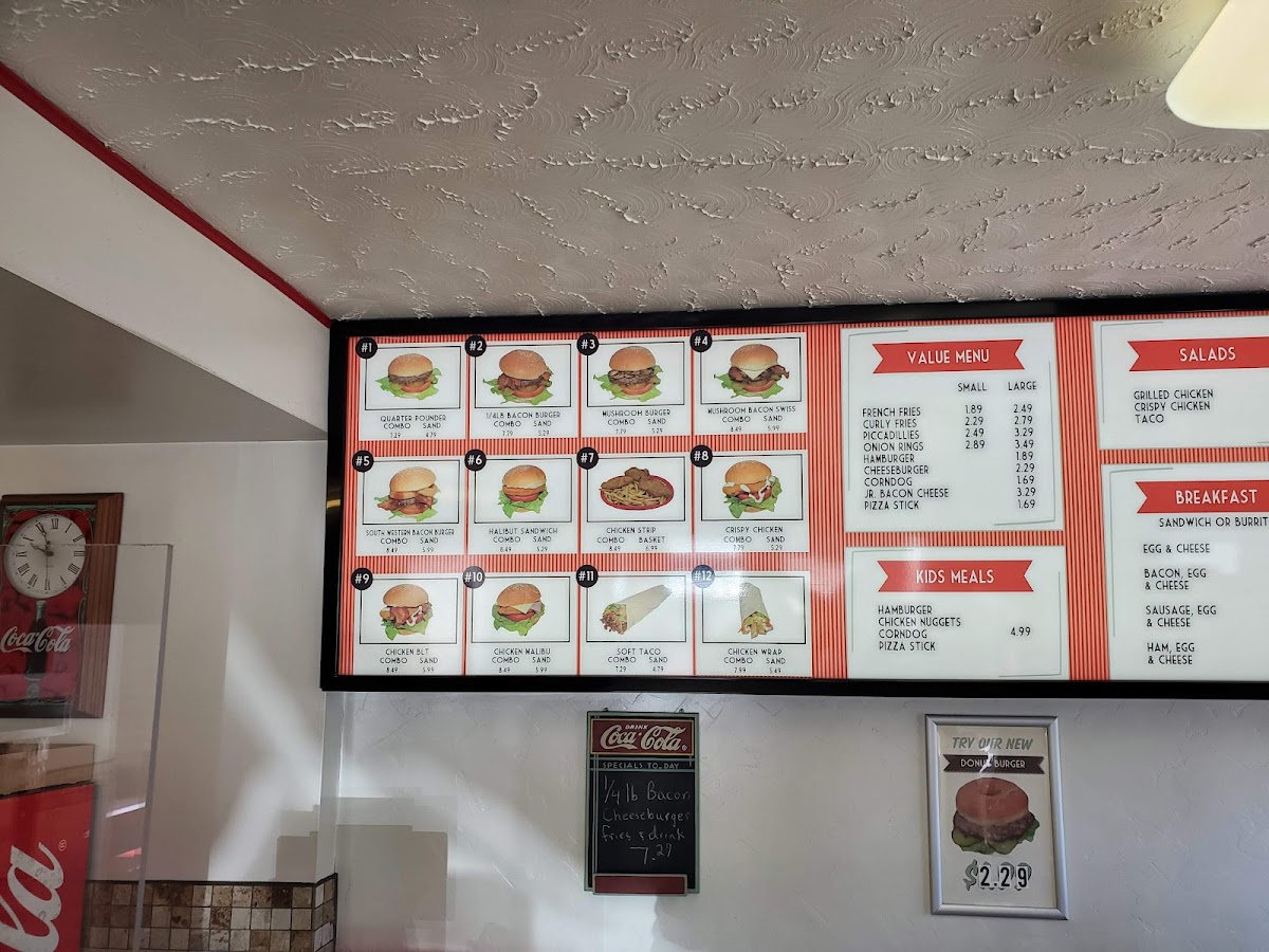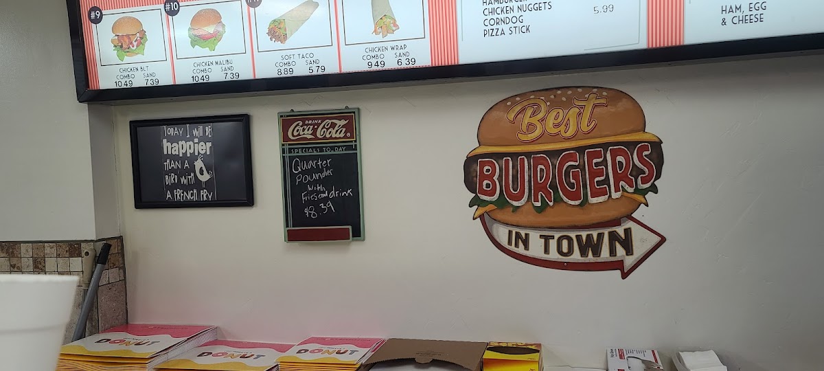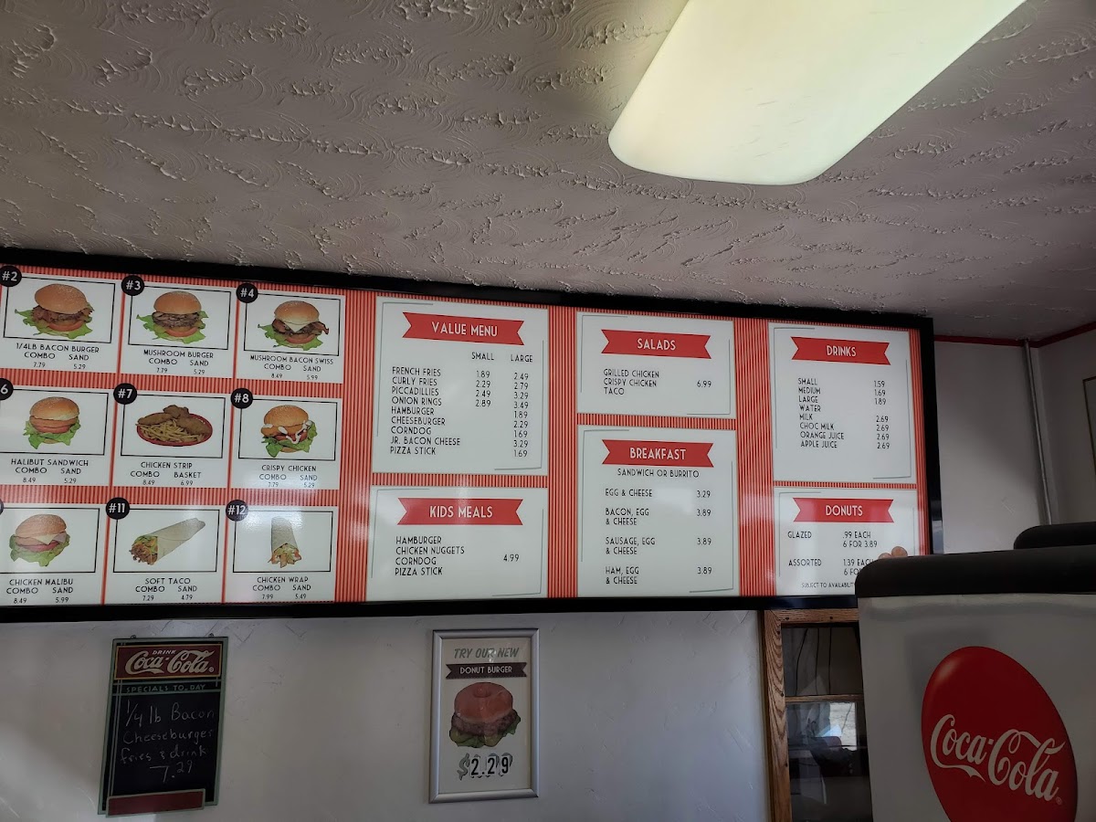 Welcome to Miller's Drive-Thru, located at 227 N Main St, Manti, UT 84642, where our menu is a delicious adventure waiting for you! Get ready to tantalize your taste buds with our one-of-a-kind specialties like the irresistibly juicy Donut Burger and the refreshing Mango Smoothie. Craving something sweet? Don't miss our mouthwatering Glazed Donuts and the indulgent Chocolate Malt! Whether you're in the mood for classic comfort food like our Cheeseburger with Fries or an exquisite Fish and Chips meal, we've got something for everyone. And for those with a penchant for fun treats, our Cotton Candy and Apple Fritter are sure to bring a smile. Dive into our delightful offerings and experience the magic of Miller's Drive-Thru today!